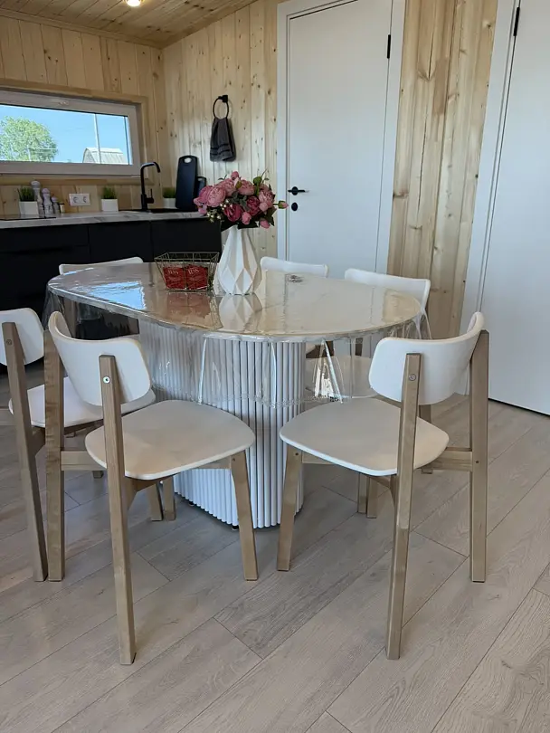 В доме две спальни с двухспальными кроватями аskоnа, в гостиной раскладной диван bоss.